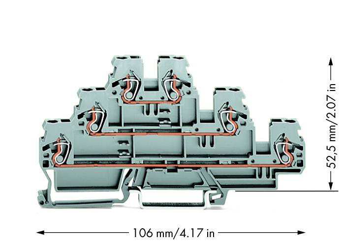 Bloc de jonction traversant à 3 étages WAGO 870-551 5 mm ressort de traction Affectation: L, L, L gris 50 pc(s)