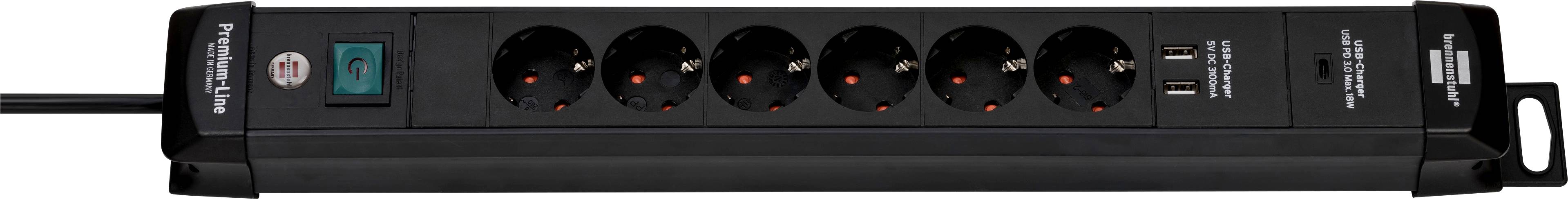 Bloc multiprise avec interrupteur Brennenstuhl 1951160607 x6 noir contact de protection 1 pc(s)