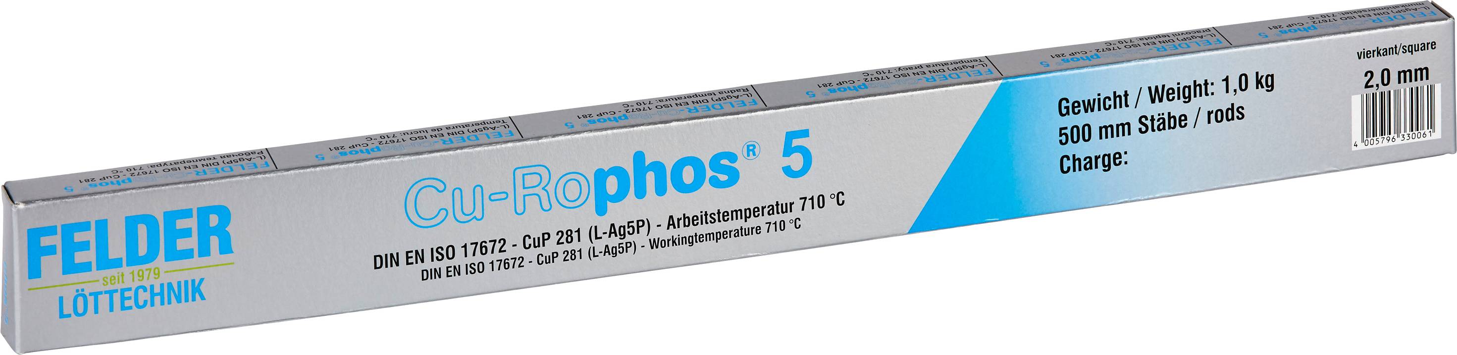 Felder "Cu-Rophos 5" Étain à souder tige, sans plomb CuP 281 16 g 2 mm