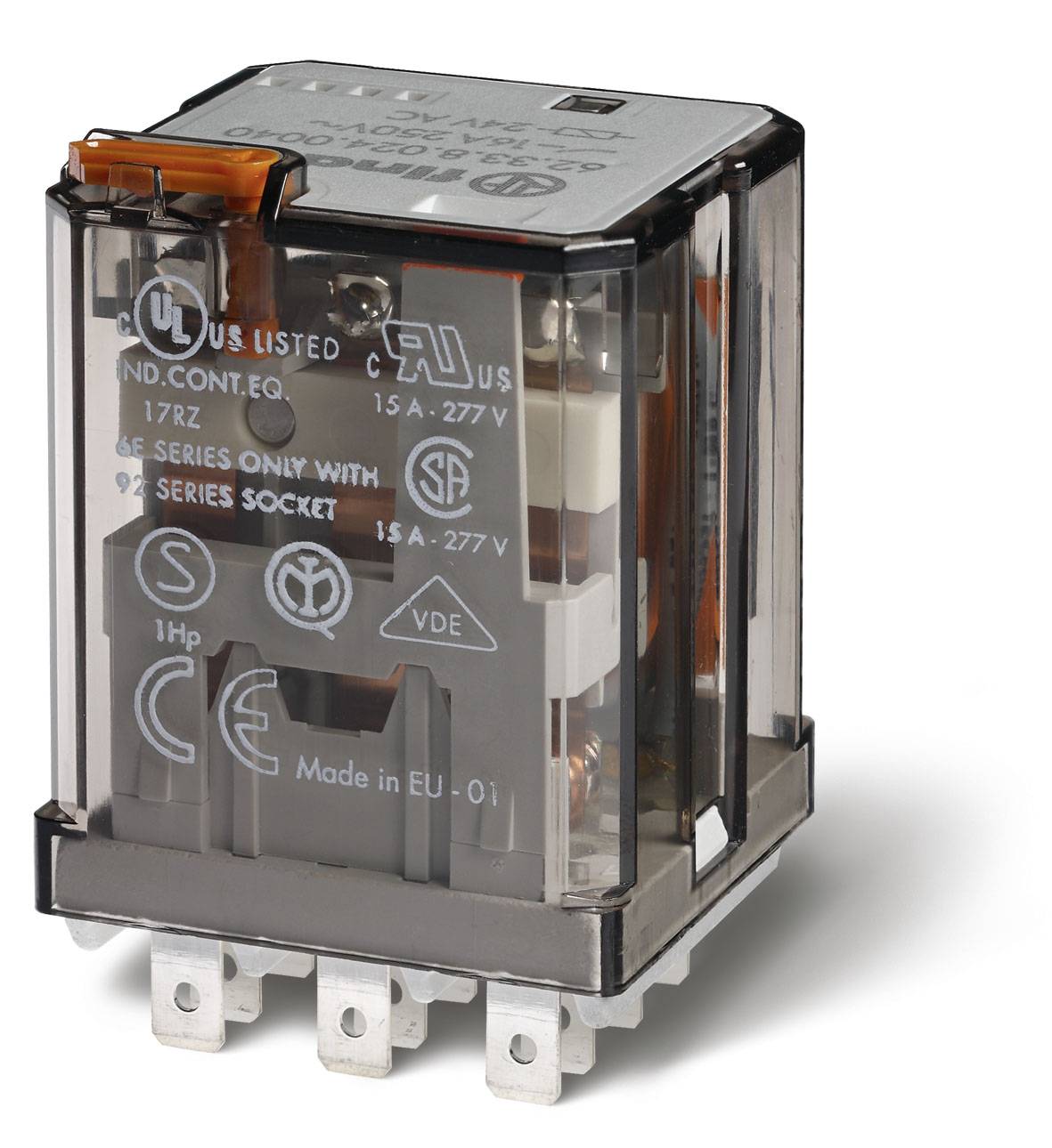 Finder 62.33.9.012.0040 Relais enfichable 12 V/DC 16 A 3 inverseurs (RT) 1 pc(s)